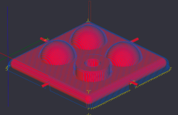 Diese Begrenzungsmethode richtet sich mit der Begrenzung nach einem Umriss. Das kann der Umriss des 3D Objekts selbst sein oder eine beliebige geschlossene Polylinie. Es muss in jedem Fall eine oder mehrere Umriss ID´s eingetragen werden. Werden mehrere Polylinien als Begrenzungen verwendet, so müssen diese nebeneinander liegen, überlappende Polylinien werden als eine Kontur behandelt, Polylinien mit Inseln müssen vorher in einen Bereich umgewandelt werden ( Menü -> Bearbeiten -> Umwandeln -> Bereich ) Verwendet man das 3D Objekt als Umriss werden die Werkzeugwege wie bei der Begrenzungsmethode Formkontur erzeugt. Polylinien die zur Begrenzung verwendet werden liegen über dem 3D Objekt, die Werkzeugwege werden in gerader Projektion auf das 3D Objekt erzeugt. Polylinien mit Inseln können als ein Begrenzungsumriss verwendet werden. Sie müssen vorher zu einer Region gewandelt werden.